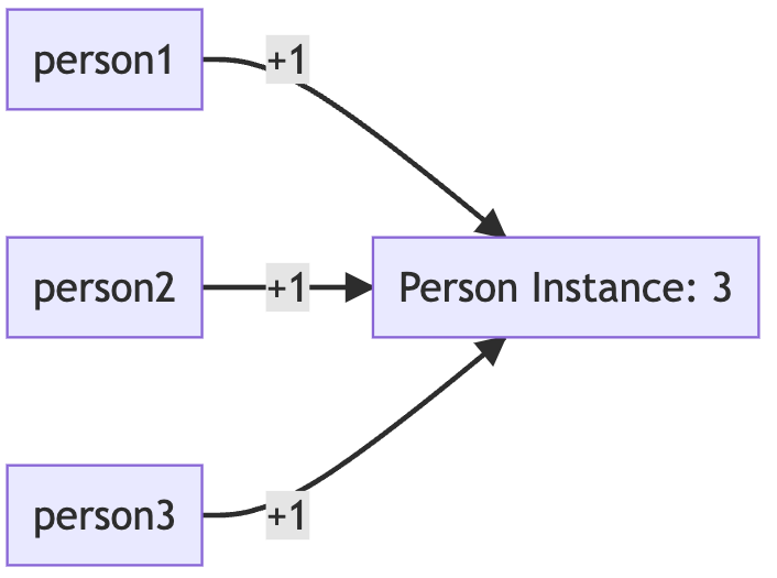 person1, person2, person3๊ฐ Person Instance์ ๊ฐํ ์ฐธ์กฐ๋ก ์ฐ๊ฒฐ๋๋ค.