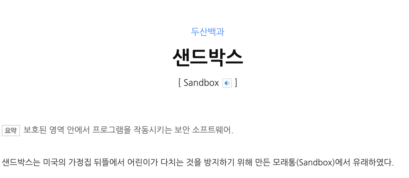 샌드박스는 어린 아이를 보호하기 위해 샌드박스에서만 놀도록 하는데 유래한 보안 모델입니다.