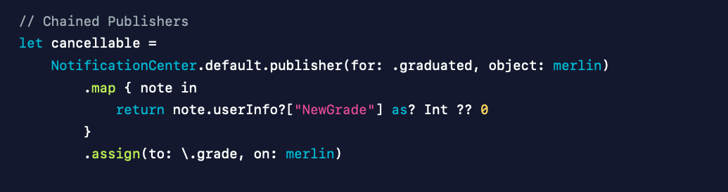 Notification을 받으면 클로저를 사용하여 매핑한 다음 메를린의 grade 속성에 할당합니다.