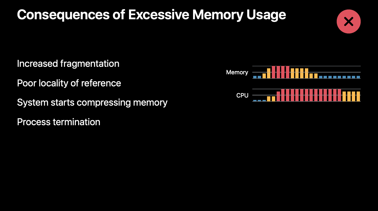 그리고 결국 앱이 너무 많은 메모리를 소비한다면, 앱 자체가 종료될 수 있다.