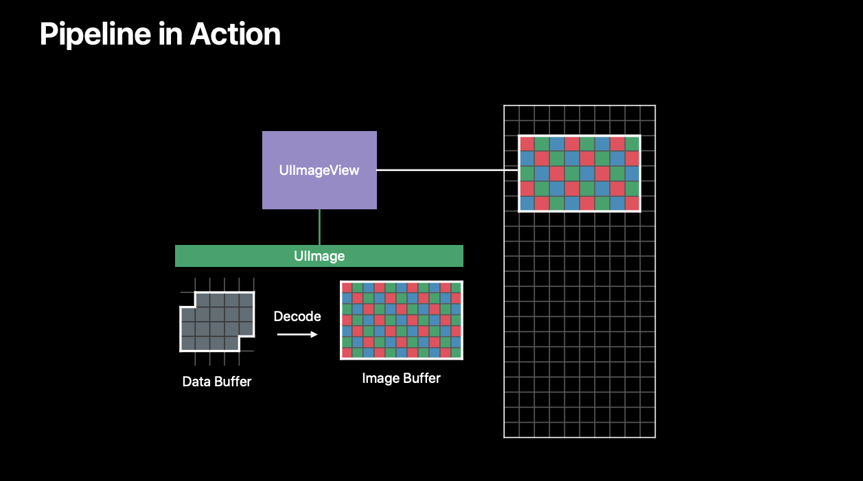 UIKIt이 이미지 뷰에 렌더링을 요청할 때마다 이 작업을 수행하는 대신 UIImage는 해당 이미지 버퍼에 고정되어 한 번만 작업을 수행된다.